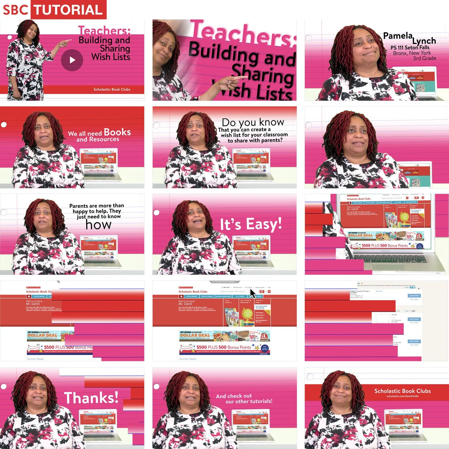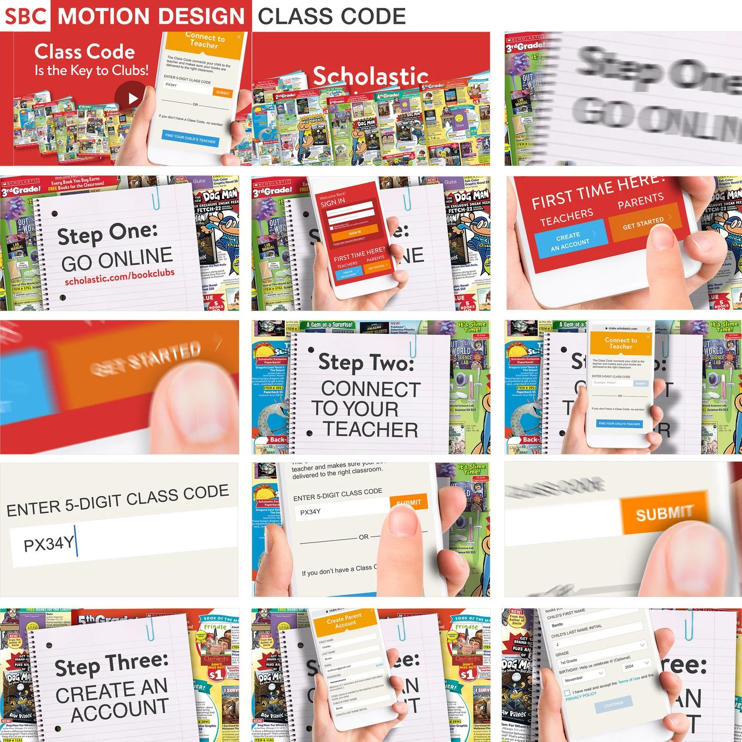 Scholastic Book Clubs website user Tutorials project focused on educating teachers on navigating the website. A fully animated video demonstrated one key tutorial using the Class Code feature. Additionally, we filmed real teachers on a green screen, explaining website functionalities like building wish lists, managing larger class orders, and transitioning from printed flyers to online orders. I designed a versatile and visually cohesive style for these tutorials, ensuring they were easy to replicate and adapt for future features while maintaining clear differentiation for each topic. This approach enhanced user engagement and streamlined updates as the platform evolved.